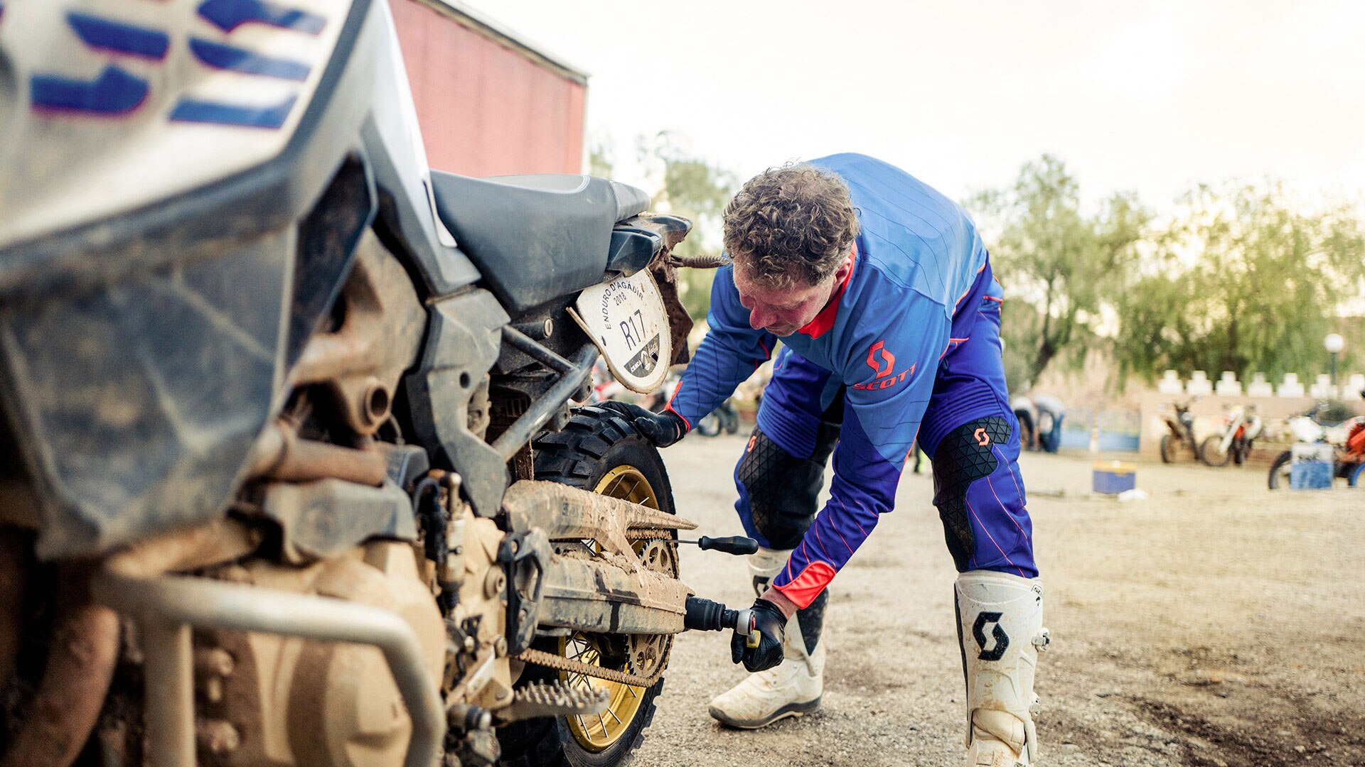 En los días siguientes, Dirk está en senderos extremadamente rocosos. En los caminos estrechos, siempre debe juzgar correctamente las dimensiones de su motocicleta. Pasa la mayor parte del último día en pistas de arena. Cualquiera sea el terreno que encuentre: "Es importante nunca rendirse y no cometer errores. Y cuando cometo errores, tengo que lidiar con las consecuencias y seguir pensando positivamente". Durante las etapas, no piensa en el día siguiente, sino que se concentra por completo en el momento. Dirk está en su elemento, disfruta de cada sección, totalmente comprometido con cada fibra de su cuerpo. "Siempre debes estar bien despierto", dice el simpático deportista. Su corazón arde por el motociclismo y el automovilismo. "Me encantan las experiencias como el Enduro d'Agadir. Por la noche me quedaba despierto en la cama, continuando mi viaje en mi mente".
