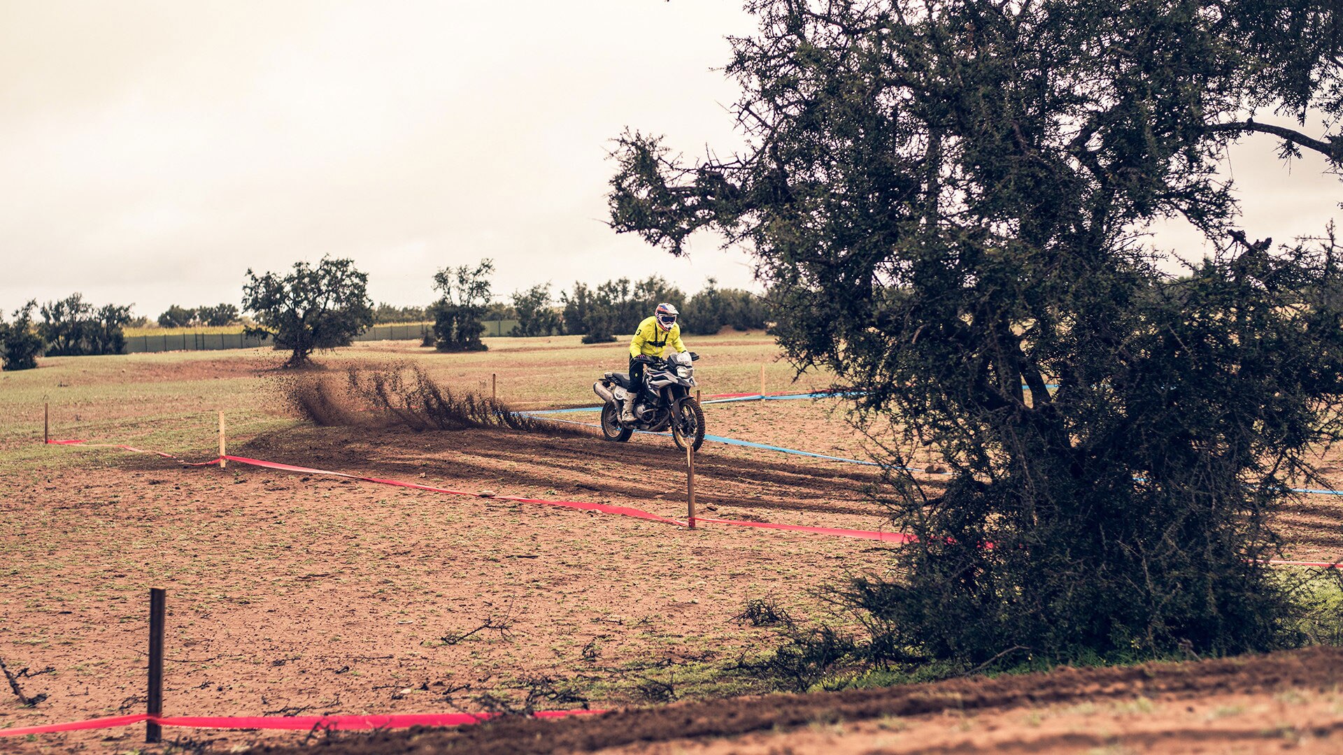 Desde la ciudad portuaria marroquí de Agadir, la ruta Enduro lleva a los ciclistas a Tafraout, ubicada al sureste, antes de continuar hacia el oeste hacia Tiznit, en las estribaciones de la cordillera Anti-Atlas. Las etapas de cuatro días son de diferentes longitudes, con distancias que van desde 174 a 239 kilómetros. El segundo día comienza para Dirk en Tafraout. Poco después del comienzo, hay una prueba especial antes de ingresar a la cordillera con una gran cantidad de escaladas rocosas. "Llevo mis límites en la prueba especial, manejando agresivamente y al mismo tiempo con cuidado, para poder sacar el máximo provecho de mi máquina. Luego someto el material al estrés y la motocicleta también tiene que sufrir. En última instancia, es una cuestión de tiempo ". En las pruebas especiales en superficies arenosas, Dirk cosecha los beneficios de la tracción del GS. Cuando está fuera de la carretera, cambia al modo Enduro Pro. "La motocicleta es extremadamente fácil de manejar con la rueda trasera. Independientemente de la superficie, tengo la sensación de que la F 850 GS puede guiarse limpiamente y de manera controlada donde el conductor lo desee.