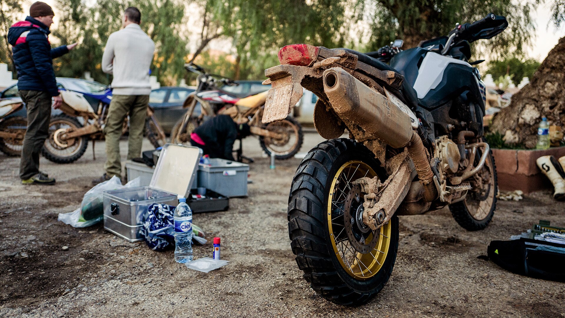 El Enduro d 'Agadir no es una empresa pequeña por naturaleza, y la competencia también es una prueba real. Debido a que los Enduros duros están diseñados para la aplicación deportiva, pesan alrededor de 120 kilos con una potencia de entre 40 y 55 HP. Dirk explica: "En comparación con esto, hay un BMW F 850 GS que pesa casi 230 kilos y una impresionante potencia del motor de 95 caballos de fuerza. Tan pronto como quiero la potencia requerida, está ahí: una motocicleta en la que puedo confiar absolutamente". " La motocicleta Adventure soporta idealmente las condiciones desfavorables.