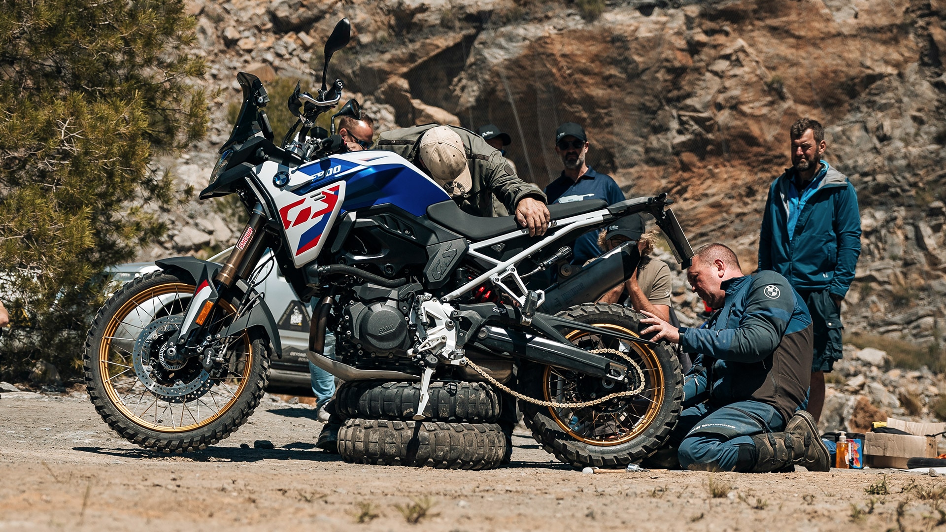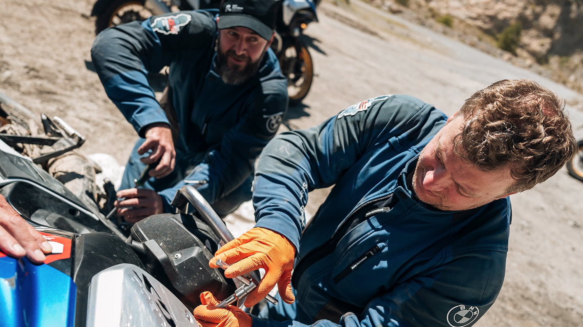 Los modelos BMW GS son famosos por su fiabilidad. Si, a pesar de ello, se produjeran fallos técnicos inesperados debido a la dificultad del terreno, los Expedition Leader están perfectamente preparados. Durante su formación, los Expedition Leader se cualifican como mecánicos de campo. Pueden hacer las reparaciones necesarias en la BMW R 1300 GS con un mínimo de herramientas y en plena naturaleza. Especialmente en superficies duras, que suponen un reto tanto para la máquina como para el conductor, como equipo debéis ser capaces de reaccionar a los problemas técnicos.